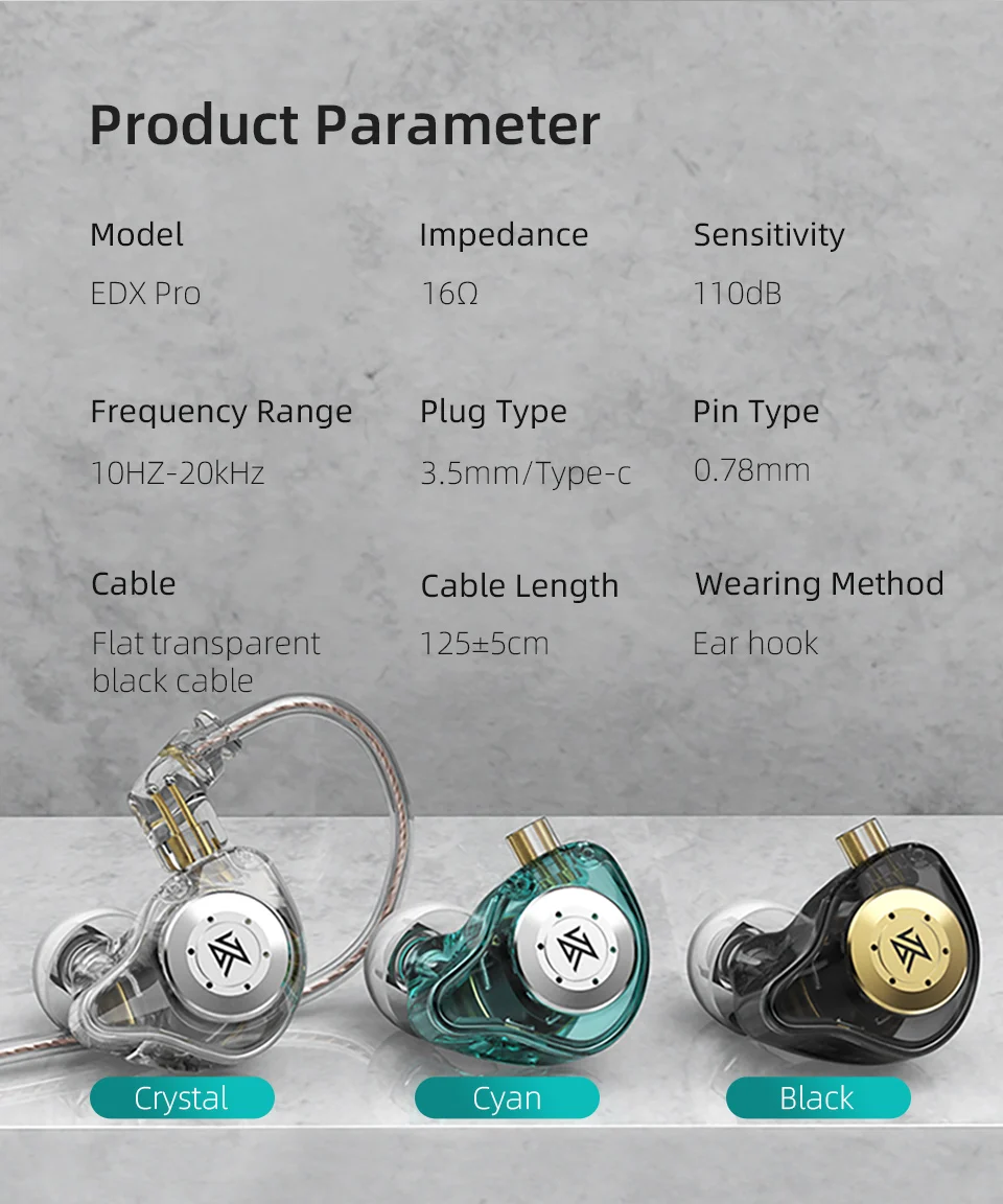 • Hi-Fi Sound Quality :Enjoy crystal-clear sound with the KZ EDX PRO Dynamic Earphones that deliver high-quality audio.